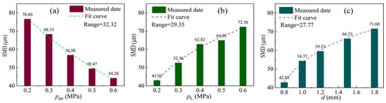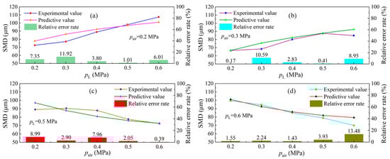 | pair/MPa | pL/MPa | d/mm | QL/(L·min−1) | Qair/(L·min−1) | SMD/μm | |