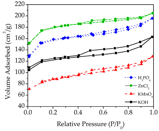 - Molina-Sabio, M.; Rodríguez-Reinoso, F. Role of chemical activation in the development of carbon porosity. Colloids Surf. A Physicochem. Eng. Asp. 2004, 241, 15–25. [Google Scholar] [CrossRef]