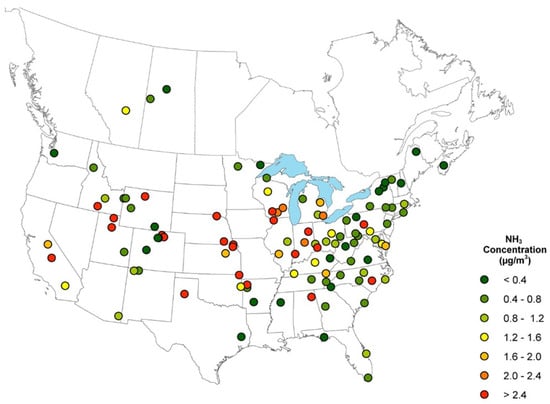 - Holst, G.J.; Thygesen, M.; Pedersen, C.B.; Peel, R.G.; Barndt, J.; Christiensen, J.H.; Bonlokke, J.; Hertel, O.; Sigsgaard, T. Atmospheric ammonia, ammonium and incident asthma—A nationwide case-control study in Danish preschool children. Eur. Respir. J. 2017, 50, OA502. [Google Scholar]