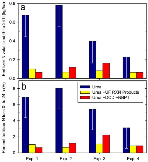 - Chin, W.; Kroontje, W. Urea hydrolysis and subsequent loss of ammonia. Soil Sci. Soc. Am. J. 1963, 27, 316–318. [Google Scholar] [CrossRef]
