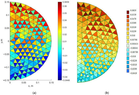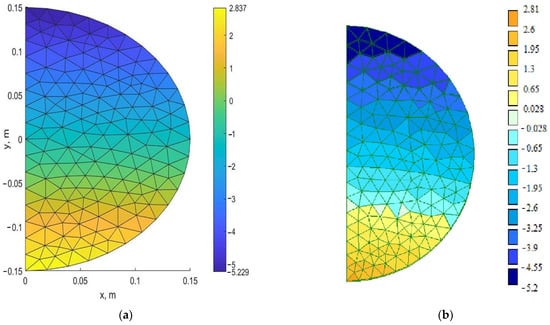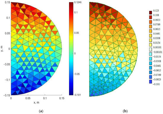 Mosaic of stresses σy (MPa): (a) MATLAB; (b) LIRA-SAPR.