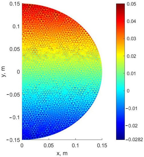 Mosaic of stresses σy (MPa) for the finer FE mesh in MATLAB.