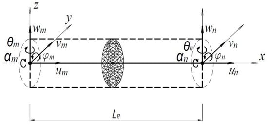 The vector {Fs} in (27), as well as the matrix [Ks] in (23) are written in the local coordinate system of the element. When compiling the system of equations of the FEM, the coordinates are transformed according to the formulas