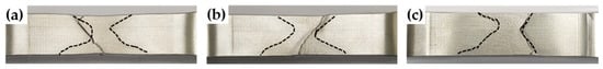 Appearance of aluminum 5083 alloy GMA weld bending test specimen using filler wires with different magnesium and manganese contents: (a) W1; (b) W2; (c) W3.