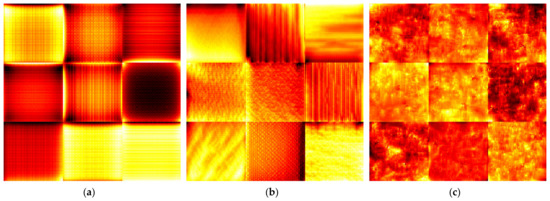 Examples of features extracted from YAMNet trained with AudioSet data: (a) low-level features; (b) medium-level features; (c) high-level features.