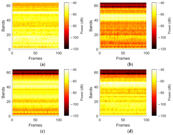 Mel spectrograms drawn from CWRU data: (a) Normal; (b) OR; (c) IR; (d) B.