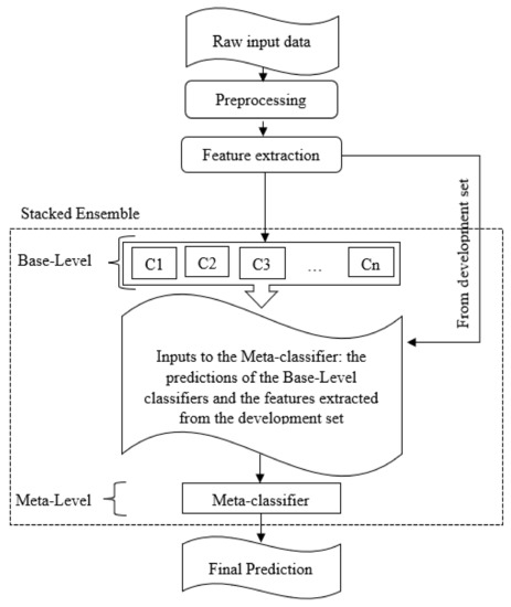 Stacking is one of the most frequently used algorithms first presented by Wolpert in 1992 [10]. One of the advantages of this approach is that each base classifier’s misclassification is minimized [10]. It has been used on multiple real-world datasets, and it achieved higher results than the stand-alone classifiers [11]. Furthermore, in some competitions, such as Kaggle [12], this approach has been employed very frequently. The popularity of the stacking approach among the users of Kaggle is due to the improved performance on real-world datasets and the fact that high-ranking participants have adopted it.