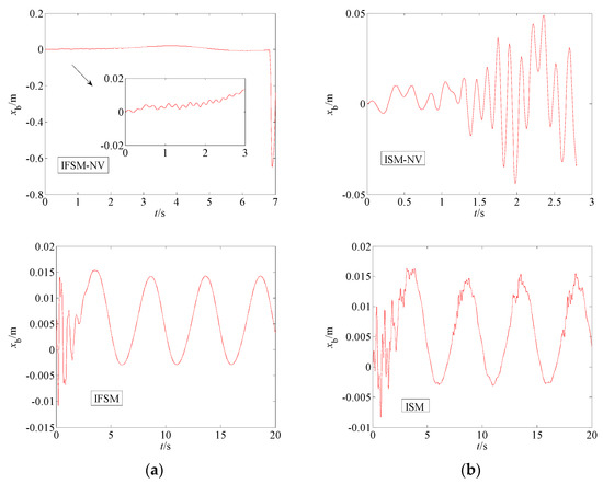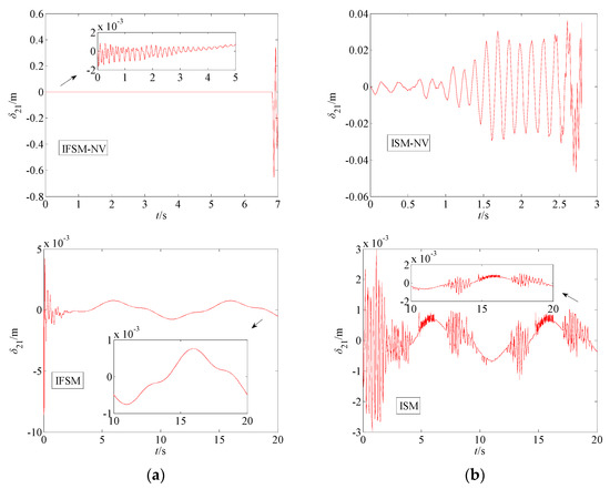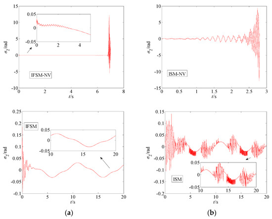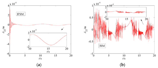 The second mode coordinates of the flexible link B2 under two controls. (a) IFSM, (b) ISM.