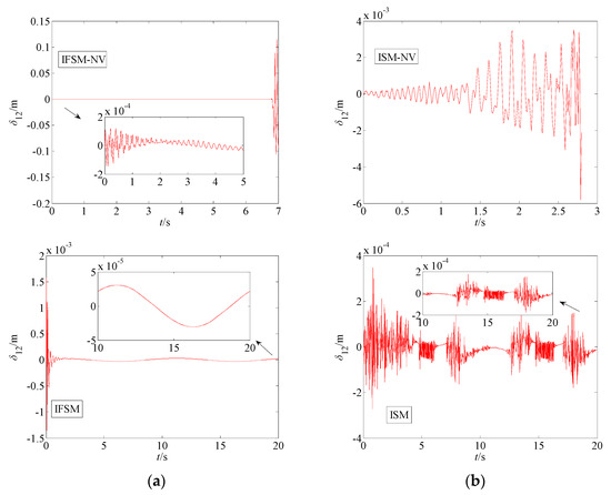 The second mode coordinates of the flexible link B1 under two controls. (a) IFSM, (b) ISM.