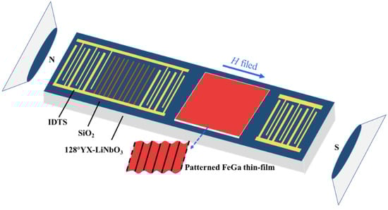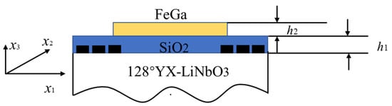 A layered media structure of FeGa/SiO2/LiNbO3 is proposed to demonstrate the sensing mechanism, as shown in Figure 2.