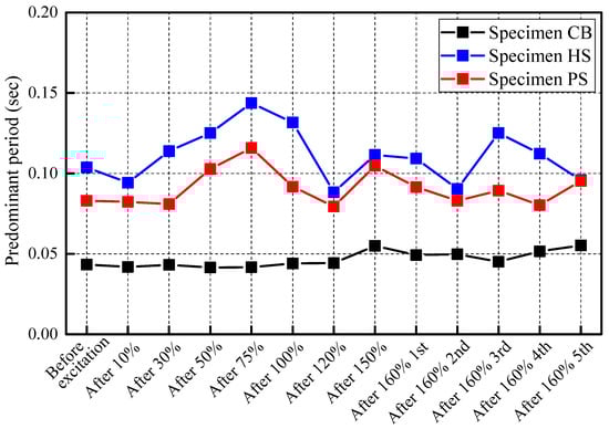 Development of predominant period of each specimen.
