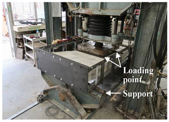 Conceptual drawing of four-point bending test of Specimen PS (unit: mm).