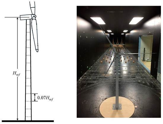 A wind turbine’s tower is the sole supporting system of its structure; it needs to resist horizontal wind and earthquake loads, as well as the vertical load of a large and heavy topside structure (rotor and nacelle). The tower’s safety and reliability ensures the total system’s safety and electricity generation efficiency. Wind loads on a wind turbine system are some of the dominant horizontal loads, and they cause severe horizontal vibrations. When wind turbine towers lose their expected and intended function by any environmental loads such as wind and earthquake loads, electricity generation efficiency is negatively affected, causing considerable economic losses and social impact. There have been many reports on severe wind events that have damaged wind turbine systems around the world [1,2]. Ma et al. [2] described a large number of serious tower failures resulting from design and operation errors or inappropriate performance assessment. An in-depth understanding of aerodynamic characteristics and failure mechanisms of a tower is necessary for both academic and related industrial communities. Dynamic analyses of wind turbine systems have mainly been verified by long-term field measurements, CFD, and numerical/analytical simulations. However, one of the challenging problems related with CFD and numerical/analytical simulations is a poor amount of dependable test and long-term field measurement data. Wind tunnel tests, one of the most reliable methods, have also been widely used to examine the aeroelastic and aerodynamic performance of wind turbines as well as electricity generation efficiency [3,4,5,6,7,8,9]. Problems related to Reynolds number have been important issues in conducting wind tunnel tests. However, Tian et al. [9] pointed out that results from wind tunnel tests are acceptable once the aerodynamic characteristics of the topside structure are identified, even though Reynolds number is smaller than the full-scale one, implying that wind tunnel studies at low Reynolds numbers can still be used for validation and verification.