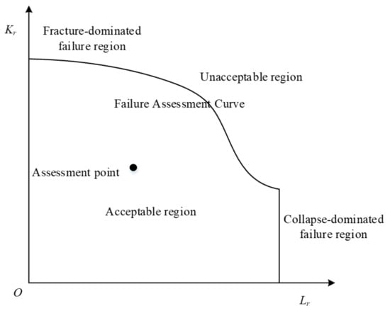 First of all, it is necessary to clarify the acceptability for pipeline defects. Several standards, such as R6 [16], BS 7910-2019 [17], CSA Z662-2015 [18], and API 579-1-2016 [19], recommend the use of the FAD method to evaluate the applicability of pipeline girth welds. Among them, after more than 40 years of research, BS 7910 has made significant developments in both breadth and depth. In particular, BS 7910 is a safe and reliable defect assessment standard which can provide assurance for new structures in the design phase, for structural integrity in the manufacturing phase, and for the entire life of the structure in the operational phase [20,21,22].