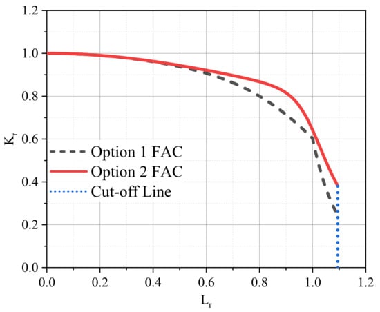 The Option 2 failure assessment curve can be determined according to Equation (7):
