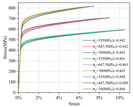 where Ar and n are the hardening coefficient and power hardening index of steel pipe, σY/σu is yield ratio (λ).
