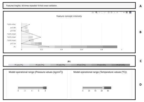 In this research, we complemented our model development with a dashboard that provides insights into the most informative features within the dataset, when considering feature selection, while also informing their relevance from the model point of view. In addition, we inform the value ranges of each sensor’s readings found in the dataset. Such values must be taken into account, since the model is able to issue good predictions within the observed ranges, and not outside them.