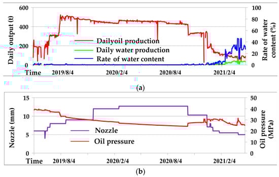 Figure 6). The maximum oil production reached 600 tons per day. After maintaining stable production for a period of time, water content was obtained. It rises in steps and then controls the smooth production of the nozzle (