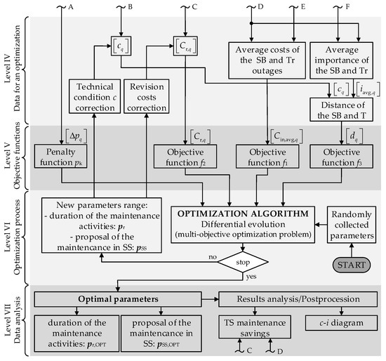 The optimization was performed to obtain optimal parameters representing the frequency of maintenance activities pr,OPT and the optimal SS pSS,OPT, in which the maintenance should be carried out. The maintenance of each TS bay is, therefore, conditioned by two optimization parameters.