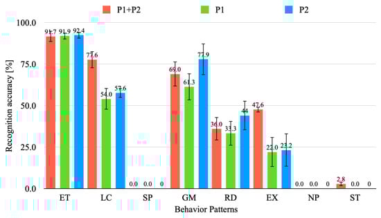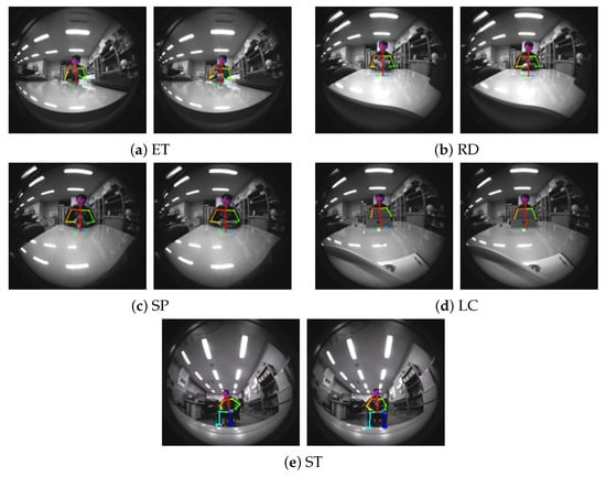 Table 5 presents details of the obtained images as our original dataset, which contains 10 subsets. Each subset was obtained twice for each behavior pattern. The behavior periods varied slightly because of the lack of a timer setting. Although all images included the subject, several unconvertible images of feature vectors occurred in LC and ST. All feature vectors were extracted from three categories: ET, RD, and SP. The conversion ratio for all datasets was 0.92 for this dataset.