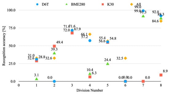 We classified sensing modalities into four categories: cameras, smartphones (SM), wearable sensors (WS), and environmental sensors (ES). Although cameras are included in ES, we specifically examine them as an independent category for the following three reasons. The first reason is that they are related to an actively researched pattern recognition problem in the computer vision field [29]. The second reason is that large amounts of high-dimensional pixel data can be obtained from cameras. In addition to still images, video sequences were used as spatiotemporal features for improved recognition accuracy [30]. Moreover, red, green, and blue–depth (RGB-D) cameras were widely used [31] to obtain depth data in each pixel. The third reason is the need for preservation and awareness of privacy. As a simple and convenient approach in the pursuit of privacy, image resolutions are reduced with degradation of spatial and temporal image quantity and quality. However, this measure will also degrade the resultant recognition accuracy [32].