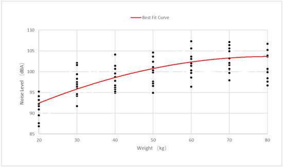 Table 4 presents a summary of the results, showing that the quantity of weight plates had a certain impact on the noise level. As the quantity of weight plates increased, the noise level continued to rise. Although the change rates of the four activities were different, the overall upward trend was consistent.
