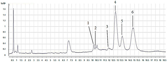 Chromatogram from the 11th and 12th fractions from the chloroformic extract of aerial parts of Salvia connivens. The “X axis is the area under the curve; the “Y” axis is retention time.