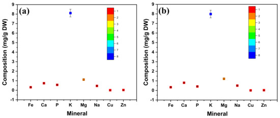 Mineral analysis of (a) WFSP and (b) WFP extracts.