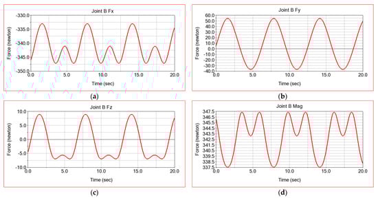 represents the constraint equations; represents Lagrange’s multipliers for constraints; represents the generalized coordinates defined in the relationships Equation (4); represents the generalized applied forces (applied forces projected on ); and [D] represents the damping matrix.