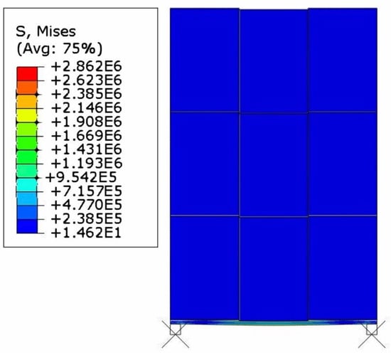 Plot of the equivalent Von Mises (MPa) stress of the unit load segment under a 3-column payload.