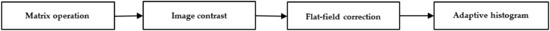Based on the above concept, the CL value in the correspondence was set to 0.02. The type selected was distribution, and the function was set as the basis for creating a contrast transformation and uniform distribution. The distribution should depend on the type of input image. The actual operation after the process is illustrated in Figure 8.