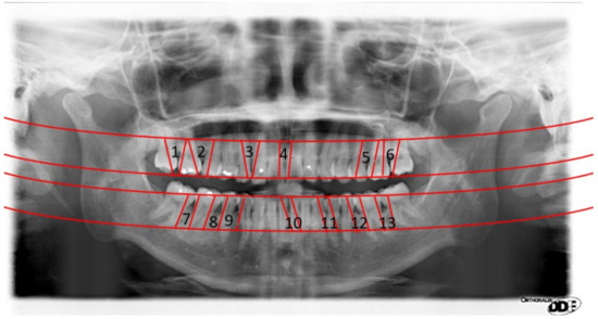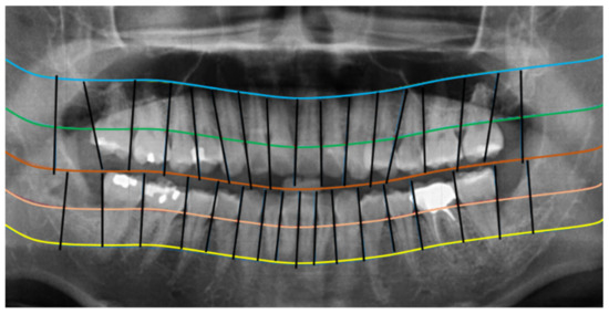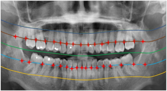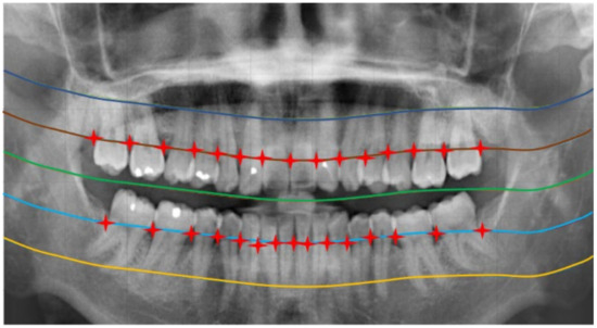 - Poonsri, A.; Aimjirakul, N.; Charoenpong, T.; Sukjamsri, C. Teeth segmentation from dental x-ray image by template matching. In Proceedings of the 2016 9th Biomedical Engineering International Conference (BMEiCON), Laung Prabang, Laos, 7–9 December 2016; pp. 1–4. [Google Scholar] [CrossRef]