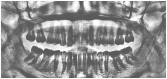- Perschbacher, S. Interpretation of panoramic radiographs. Aust. Dent. J. 2012, 57, 40–45. [Google Scholar] [CrossRef] [PubMed]