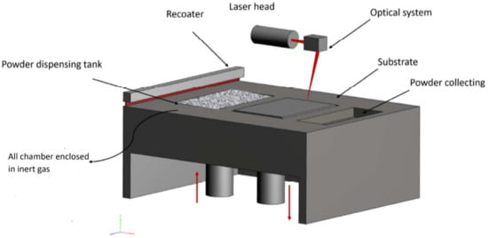 The unmatched ability of metal additive manufacturing (AM) to produce customized parts with complex geometries has led to increased demand for these processes. According to the ISO/ASTM 52900 international standard, the most adapted metal AM technologies are directed energy deposition (DED) and powder bed fusion (PBF). Both processes use a laser or an electron beam to selectively melt the metal and build the part in a layer-by-layer method. Powder bed fusion (PBF) processes include direct metal laser deposition (DMLS), selective laser sintering (SLS), selective laser melting (SLM), electron beam melting (EBM), and selective heat sintering (SHS) []. The laser powder bed fusion (L-PBF) process has better surface quality and higher dimensional accuracy than other metal AM processes [].