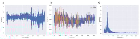 The success of ML techniques depends mainly on the quality of the data fed to the algorithm; if the data contains irrelevant information, it may result in inaccurate results. Thus, data preprocessing is essential in the ML process, especially for AM applications where a large dataset is created. Data preprocessing can help solve problems of data redundancy, missing data, and noisy data []. Applying a digital filter may be necessary for AE signals to separate high- and low-frequency signals related to background noise []. For welding, cladding, and AM applications, transforming into fast Fourier transform are common preprocessing methods, as illustrated in Figure 9. Lately, the use of spectrogram is also becoming a common approach []. Some preprocessing for pyrometers included the use of discrete Fourier transform as well []. Preprocessing for image sensors includes background removal, filtering, and cropping []. For example, if meltpool is being monitored, the meltpool area will be measured, and the spatter area will be isolated for further investigation. Solid knowledge and experience in the process are necessary to identify digital representations and features in data acquired through images []. For example, when the part superelevated, the edge of the part appears after the fresh powder has been recoated. An experienced operator can detect this error and differentiate between it and other common errors such as debris or recoater hopping. Another common approach is to use principal component analysis (PCA) as a data preprocessing tool. However, if not used carefully, important information might be lost and affect the accuracy of the results [].