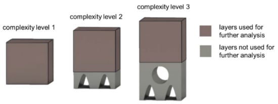 where “P” is the laser power, “v” is the scan speed, “h” is the hatch distance, and “t” is the layer thickness of the powder. The VED defines the amount of energy delivered to the powder per volume. Therefore, it influences the melting mode and defect formation. Thus, VED can be regarded as a broad guideline for parameter selection, as it can be compared to the theoretical energy required to melt metallic powder effectively [].
