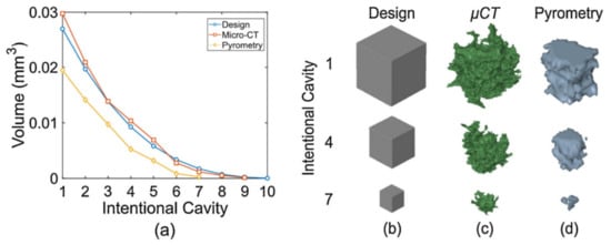 The laser powder bed fusion (L-PBF) process produces complex geometries and lattice structures with high feature resolution [,]. Compared to conventional manufacturing processes, AM processes do not use expensive tooling or dies, which helps to reduce the lead time for parts manufactured using AM processes []. Moreover, L-PBF processes help reduce the need for assembly, thus decreasing the total number of parts in a single component []. The capabilities for weight reduction have been the main driver for aerospace industries to invest in L-PBF processes heavily []. Furthermore, the ability to customize implants to each patient-specific anatomy and produce a complex lattice structure was vital for the biomedical industry’s interest in L-PBF parts []. In addition, the tools and dies industries have used the advantages of the L-PBF process to manufacture dies with conformal cooling channels, which significantly improves the performance of these components []. Instead of having traditional drilled cooling channels, the cooling channels are custom-made to each cavity, thus reducing cooling and cycle times and improving the overall process performance.