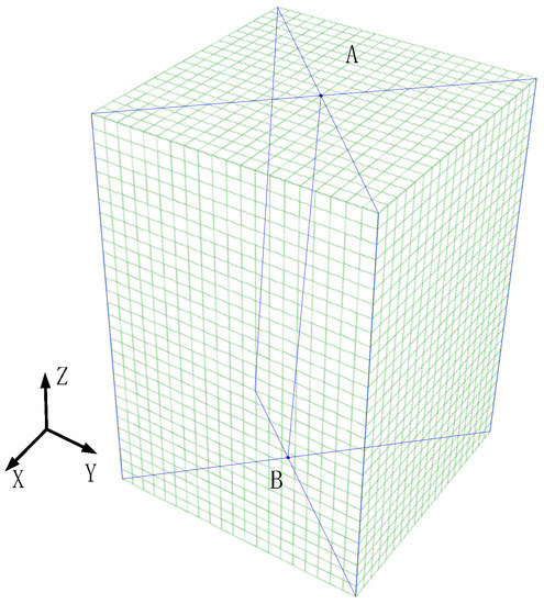 In the validation example of the artificial viscoelastic boundary, a 3D uniform semi-infinite elastic FE model is illustrated in Figure 1. Point A is the midpoint of the top boundary and point B is the midpoint of the bottom boundary.