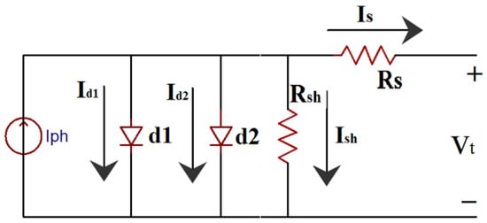 The mathematical model of the double-diode model is given below.