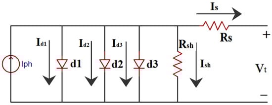 The mathematical formulation of the three-diode model is given by Equation (3) as: