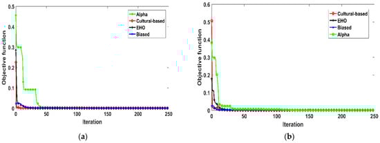 Convergence rates of EHO and its variants. (a) single diode. (b) double diode.