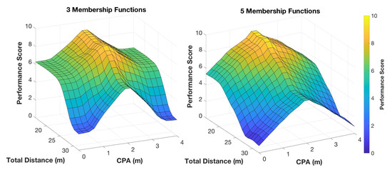 For Case Study II, the rule base (as shown in Table 3) is adjusted to incentivize a heavier weighting of the safety of the vehicle. Here, a higher CPA score corresponds to the linguistic term “far”.