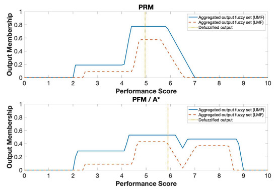 For the first two test cases (Case Study I and Case Study II), the goal of this validation test for PERFORM (from a test engineer’s point-of-view and without loss of generality) is to evaluate a vehicle’s ability to detect an unknown stationary obstacle (if any), replan a path to safely avoid any such obstacles, and to reach the goal waypoint(s) with an acceptable path length. To accomplish this, two performance criteria are selected to evaluate performance: the vehicle’s total distance traveled and the closest point of approach (CPA) to any existing obstacle. These criteria serve as the two inputs to the IT2-FL system. For the third case study (Case III), the goal of the validation test is to evaluate how efficiently the autonomy engine is able to complete an area survey mission, so path percent error and average speed are the chosen inputs. The overall performance score of the path-planning autonomy is the output for all three cases.