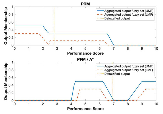 There are various ways to generate MFs to best suit the intentions of the autonomy test engineer. For this application, each testbed sensor used for PERFORM includes fuzzy MFs to account for specific sensor characteristics and uncertainties. For example, total distance traveled is determined using GPS. The uncertainty in the GPS measurement, found experimentally or those provided by product specifications/documentation, is integrated into the MF FOU. Sensor measurement quality can also be affected by sources such as high noise levels and changing environmental conditions (e.g., humidity, rain, etc.) [35,38]. If desired, these methods may also benefit from added knowledge from a priori simulations giving further context to suitable measurement ranges/bandwidths and corresponding MF intervals for a given testbed.