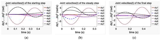 The motion of robot link: the joint velocities (t) in the starting (a), steady (b), and final (c) steps.