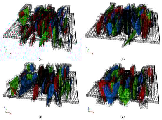 Discrete fracture networks and aquifers. (a) Aq1, (b) Aq2, (c) Aq3, (d) Aq4.