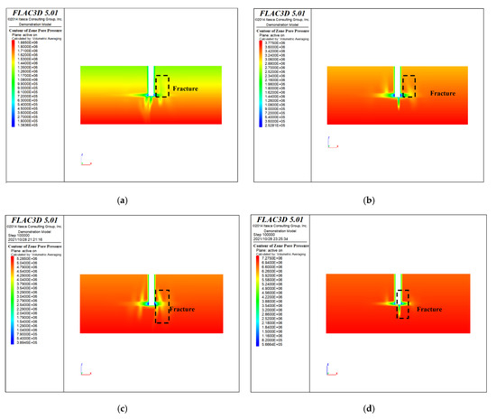 The initial pore pressure field of fracture network. (a) Aq1, (b) Aq2, (c) Aq3, (d) Aq4.