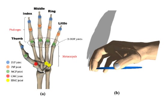 - Li, Z.M.; Jie, T. Coordination of thumb joints during opposition. J. Biomech. 2007, 40, 502–510. [Google Scholar] [CrossRef] [PubMed]