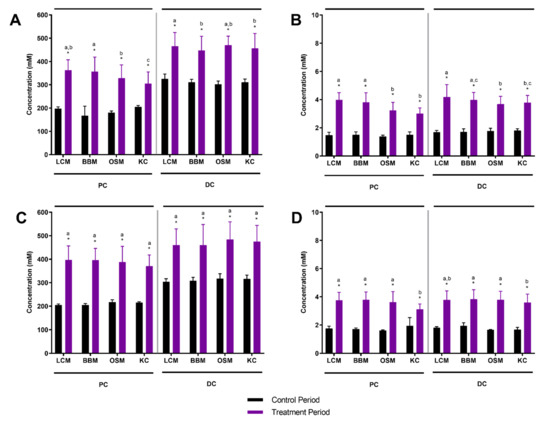 | Average of Donors A and B | lumen | PC | 6.9 | 22.5 * | 7.7 | 20.5 * | 8.6 | 19.6 * | 6.4 | 20.8 * |