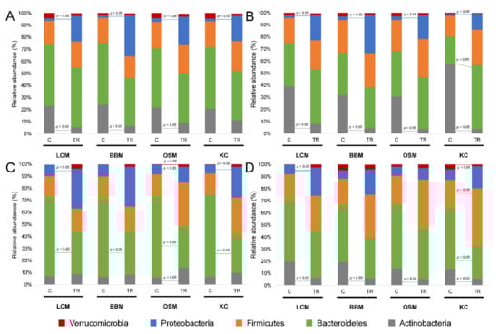 - Van den Abbeele, P.; Grootaert, C.; Marzorati, M.; Possemiers, S.; Verstraete, W.; Gerard, P.; Rabot, S.; Bruneau, A.; El Aidy, S.; Derrien, M.; et al. Microbial community development in a dynamic gut model is reproducible, colon region specific, and selective for Bacteroidetes and Clostridium cluster IX. Appl. Environ. Microbiol. 2010, 76, 5237–5246. [Google Scholar] [CrossRef]